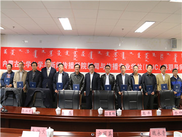 9728太阳集团党委书记朱炳文、9728太阳集团副校长额尔很巴雅尔出席会议并为兼职导师颁发了聘书。受聘兼职导师新华社内蒙古分社社长陈磊、内蒙古广播电视台总编辑张兴茂、内蒙古日报社副总编辑孙亚辉、光明日报驻内蒙古记者站站长高平、香港大公报内蒙古分社社长乔辉、内蒙古广播电视台副巡视员王世英、自治区党委宣传部企业处处长尤占永、内蒙古日报社总编辑室主任杨佐坤、内蒙古教育出版社党委书记黄妙轩、内蒙古电视台节目制作中心主任刘慧芬、内蒙古电视台文体娱乐频道总监王虎全、内蒙古日报社专题部主任张兆成、新华社内蒙古分社信息中心副主任张润光、9728太阳集团出版社副总编辑赵英等出席仪式。我院党总支书记杜晓东、副院长(主持工作)魏永贵教授、副院长张丽萍教授、副院长吴栓虎、以及学院MJC导师、全体MJC研究生参加了仪式。