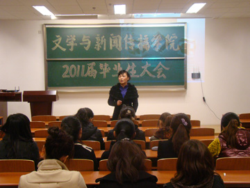 太阳集团tyc9728召开了2011届毕业生就业专题会。会议由学院团总支张莉主持,2007级的60多名学生参加了本次会议。