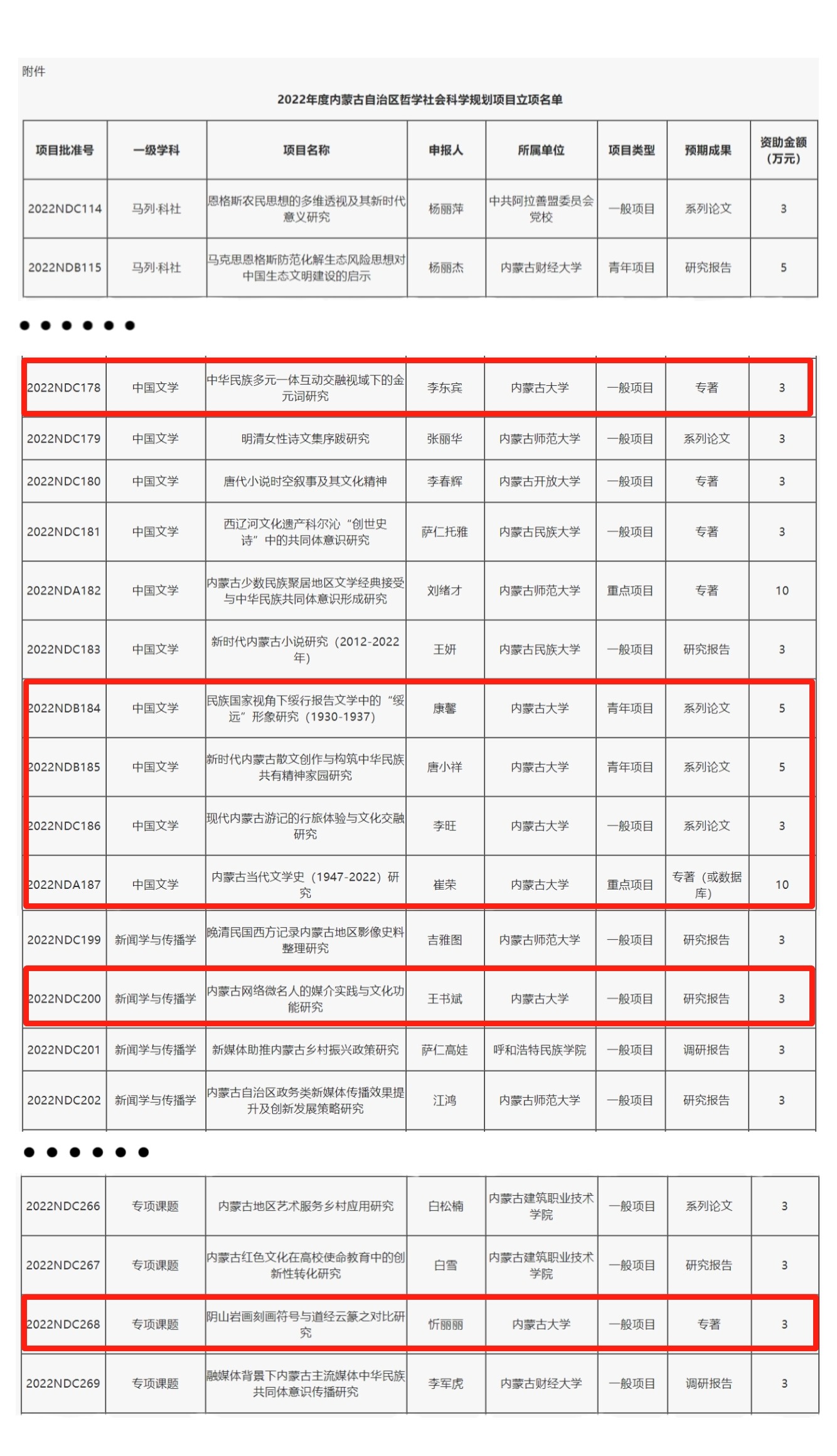 12月7日,2022年度内蒙古自治区哲学社会科学规划项目立项公示,我院有7位老师立项,分别为:崔荣老师,李东宾老师,忻丽丽老师,李旺老师,唐小祥老师、康馨老师,王书斌老师。