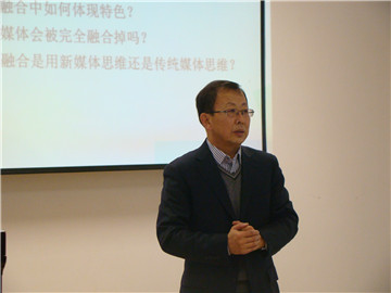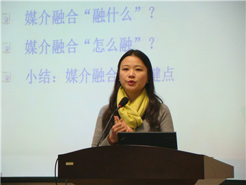 甘露老师现工作于中国传媒大学新闻传媒学院欧洲传媒研究中心,博士生导师。讲座以媒介融合为主题。她指出,在新技术的发展下,“媒介融合”的洪流无法阻挡,已经成为一种无所不在、影响巨大的现象。媒介融合本意是指各种媒介呈现出多功能一体化的趋势,这种关于媒介融合的想象更多的集中于将电视、报刊等传统媒介融合在一起,实质是消费者可以用无所不能的终端通过无处不在的网络,获取各自所需要的服务。而甘露老师认为,改变其目前发展的困境一个战略是将内容提升到产业的高度,通过引导或支持相关产业组织的建设并促进产业组织合理的竞争与协作,构建较完善的产业链并保证产业链通路的顺畅,从而使内容能够规模化生产,大批量集成,面向大市场销售。甘露老师深入浅出的解析,生动活泼的语言,赢得了在场师生的热烈掌声。