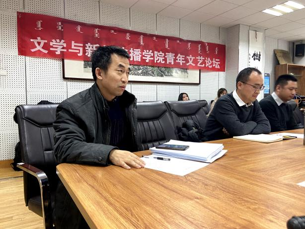 讲座结束后,我院师生组织了关于人工智能艺术问题的研讨会。其中,孙恒存老师做了《人工智能的双重转义》主题发言,提出了两种人工智能进入艺术领域的过程,和六类人工智能艺术中潜在的悖论;左少峰老师做了《科幻小说中的人工智能》主题发言,论述了电影中AI形象仿真化、拟人化和人工智能背景下工具理性、共同体建立、科学主义的焦虑等问题;白叶茹老师做了《蒙古族科幻小说简介》主题发言,介绍了蒙古科幻小说的发展史;白文硕老师做了《后人类视域下科幻电影的物性表征》主题发言,论述了“后人类”时代的特征,和人与物置换的问题;康馨老师做了《人工智能时代的主体性认知管窥》主题发言,辨别了“主体性”问题的科技性与人文性。此外,研究生代表刘思麟、马金娥、孟言、包丽日也分别进行了主题发言。论坛由鄢冬老师主持,李旺老师进行了评议。