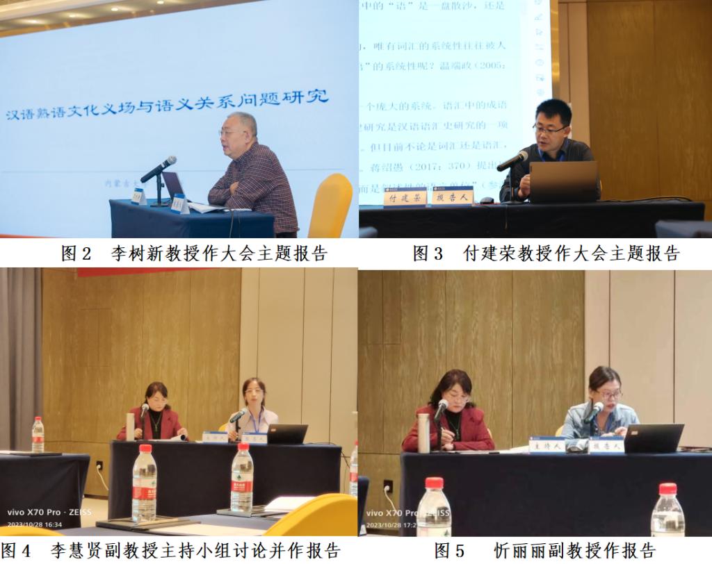 大会期间,李树新教授和付建荣教授分别以《汉语熟语文化义场与语义关系问题研究》《语义二分法与成语系统构建》为题作了大会主题报告,李慧贤副教授、忻丽丽副教授和青年教师雷雨分别作了题为《论中华谚语的变异与文化认同》《汉语熟语所体现的道家文化探析》《文化交融的润滑剂:青海托茂人俗语研究》的分会场报告。