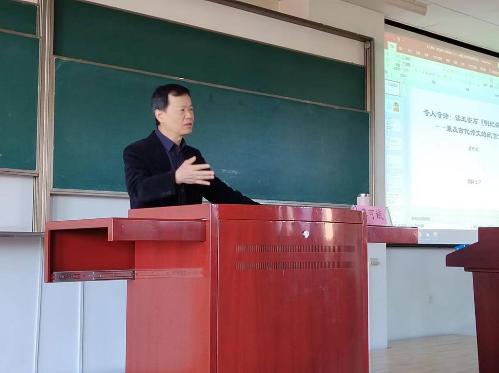 2024年5月7日上午8:00,太阳集团tyc9728在南校区卓越楼阶3A举办本科生前沿学术讲座。本次讲座邀请到了北京大学中国古文献研究中心主任廖可斌教授,讲座题为“奇人奇诗:读王安石《<明妃曲>之二》——兼及古代诗文的欣赏方法”,由我院刘志中教授主持,太阳集团tyc9728部分师生共同聆听。