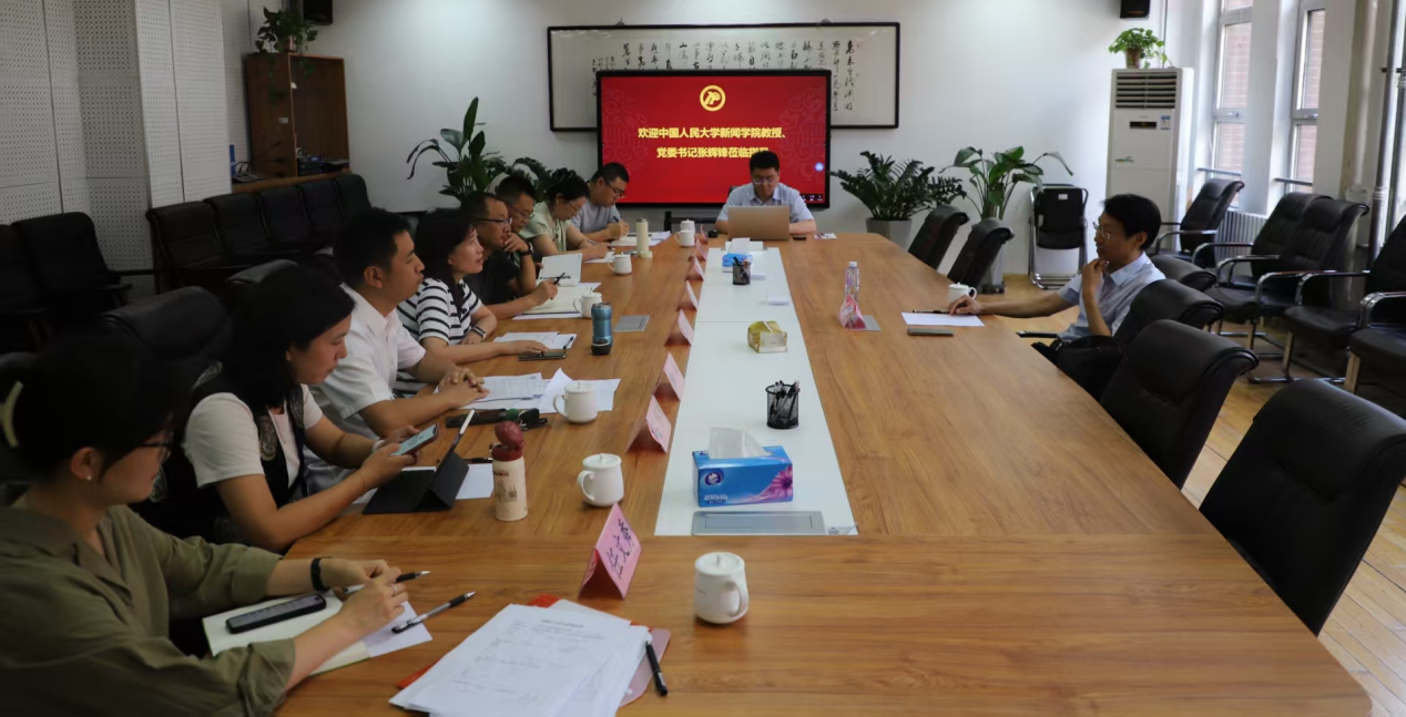 2025年8月20日,太阳集团tyc9728特邀中国人民大学新闻学院党委书记、副院长张辉锋教授交流指导,并举行了深入座谈。我院院长米彦青、教学副院长付建荣、科研副院长鄢冬、党委副书记康宝军等教师代表出席,双方就本科生交流、学科建设、科研合作等关键领域展开讨论,达成多项合作共识。