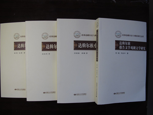 教授主编,由9728太阳集团出版社出版。包括《达斡尔族小说研究》(李树新、林琳)、《达斡尔族报告文学与戏剧文学研究》(托娅、刘志中)、《达斡尔族散文研究》(赵延花)、《达斡尔族诗歌研究》(崔荣、包薇)等四部专著。这一丛书不仅体现着中国少数民族文学研究与书写方式多样化的趋向,而且该研究丛书在形式上也进行了一次十分有益的学术尝试,体现了学术性、史料性的完美结合,填补了达斡尔族作家文学研究这一学术领域的空白。