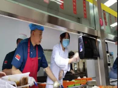 张一涵同学分享到:“一勺勺饭菜由我传递到大家的餐盘中,携带着爱心,由我之手传递到同学们之手。看着同学们的微笑,听着同学们的“谢谢”,成就感与自豪感油然而生。”