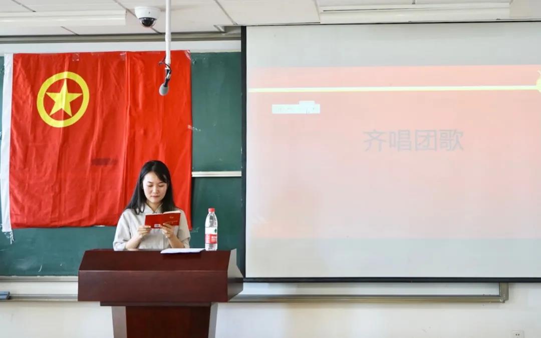 团课最后,同学们齐唱团歌。“我们是五月的花海,用青春拥抱时代;我们是初升的太阳,用生命点燃未来。”激扬的旋律展示百年风采,“不论过去、现在还是未来,中国青年始终是实现中华民族伟大复兴的先锋力量”,同学们在高唱着属于共青团员的颂歌中感受着青春力量,也进一步增强了作为一名团员青年的使命感和自豪感。