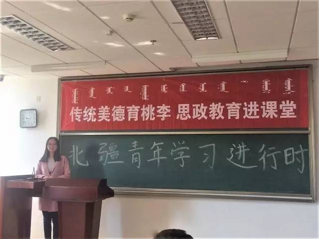 21日上午,2015级汉语国际教育专业的同学们在主楼0610开展了以“北疆青年学习进行时”为主题的班会,这也是“传统美德育桃李·思政教育进课堂”品牌活动在本学期开展的第六场专项活动。