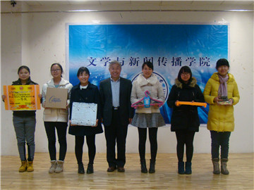 首先进行的是学院第七届“展新风秀博雅”雅室设计大赛颁奖典礼,对2014年学生雅室设计大赛中的优秀宿舍及优秀个人进行表彰。“张扬个性,绽放青春,文新学院展新风新貌;奇思妙想,别具匠心,莘莘学子秀博雅情怀。”伴随着主持人的讲解与展示,本次雅室设计大赛的获奖宿舍逐一揭晓。本次雅室设计大赛以“加强学生宿舍文化建设,营造温馨舒适的学生宿舍环境”为宗旨,得到了同学们的大力支持。经过近两个月的精心准备和众多环节的评比,2号楼107宿舍以其精心的设计、优雅的布景、温馨的气氛和美好的寓意获得评委们的一致好评,夺得本届雅室设计大赛的一等奖。此外,本次雅室设计大赛还评选出优秀讲解员10名,优秀雅室征文18篇。为了对获奖宿舍进行鼓励,学院为获奖宿舍准备了丰富多样的奖品,并进行了隆重的颁奖。