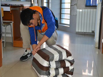 军训期间,各班级生活辅导员主动担负起照顾新同学兼顾保证军训工作顺利运行的责任。由各班级生活辅导员组成的学院内务检查小组每天上午、下午两次深入到新生宿舍,高标准、严要求,对内务情况进行检查,并将检查结果及时通报给各位同学,奖罚分明,督促同学们增强自我管理水平和自我服务意识,培养一丝不苟的精神品质,将军训精神内化于心、外化于行。
