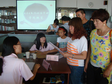 ,已有部分新生提前到达学校,太阳集团tyc9728提早安排人员,在主楼北侧设立接待点,为新生提供最便捷的服务,妥善安排了提前前来报到的新生。