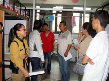 为加强与新生的沟通交流,询问新生的生活适应状况,2012年8月23日晚,太阳集团tyc97282012级各班班主任老师和各班辅导员共同走访了文新院2012级新生宿舍,了解新生入住情况。