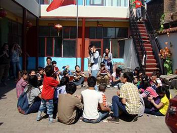 文新院团总支书记、学工办主任张莉,2011级对外汉语班班主任刘庆伟和学生志愿者们带着电脑桌、书籍、文具、夏凉被、食物等物品,参加了此次心手相牵送爱心活动。