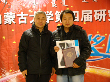 | 王俊川和敖文格日乐为优秀组织奖获得者颁奖 |