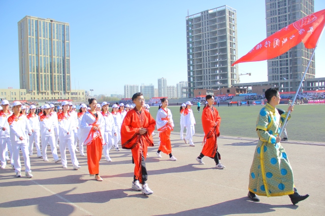 随着鼓号队奏起进行曲,各学院代表队依次入场,我院代表队第二个入场。踏着鼓点,我院方阵迈着矫健的步伐经走过主席台,方阵队员们体现了文新学子昂扬的斗志。