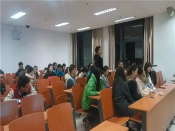 董晓宇辅导员从学习、朋友、爱情、未来四个方面分别介绍了台下同学们将要面对的大学生活。 她向同学们说明大家面对学习的正确态度,教会了同学们如何正确与人相处。当谈到爱情时,董晓宇辅导员为台下的同学们讲了自己浪漫的爱情故事,脸上露出了幸福的微笑。