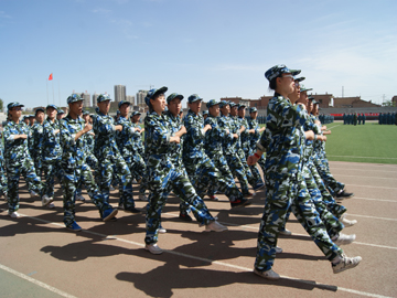 “正步——走,一——二……”摆臂、踢腿,虽然已经练了无数遍,但从没有人抱怨,从没有人松懈,从没人放弃,一步步、一遍遍依然做得那么认真,踢得那么有力。“相约内大,汇聚文新,钢铁三连,势必争先……”,这响亮的声音吼出了他们的心声,喊出了文新人特有的风采。 青春的朝气在迷彩的掩映下更加蓬勃,迷彩的色泽在青春的光芒中愈加翠绿。青春与迷彩的碰撞,交织出最亮丽的风景线。