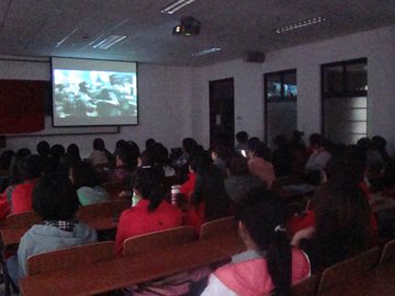 随后,活动充分发挥优秀爱国主义影片的教育功能,为大家播放了爱国教育影片《我的长征》。电影以一个普通红军小战士王瑞的命运为主线,前后贯穿了长征过程中的各个重大事件。通过他在湘江战役、遵义会议、四渡赤水、飞夺卢定桥等事件中的不平凡经历,折射出了红军两万五千里长征这个东方神话。观看现场,全体学生深深的被影片中的情节所打动,“勿忘历史、爱国报国”的情怀再一次激荡着每位青年的心灵。最后,大家就青年成长、珍惜现在、树立理想等方面内容进行了热烈讨论。