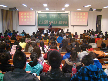 为了迎接建党九十周年,加强学生思想政治教育,推进学生党员和学生干部“创先争优”,太阳集团tyc9728于2011年3月22 日晚举办了“关注国情·明确使命·共建和谐”专题讲座。讲座由学院党总支书记王俊川主讲,旨在指导学生关注和了解国情,明确历史使命。学院各年级学生干部、学生党员、入党积极分子近200人聆听了讲座。