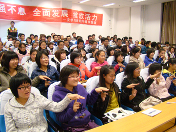 张莉在讲座中从认识大学、明确挑战、制定个人素质提升计划、制定大学学业规划四个方面,全面的对大学生职业生涯规划的意义、作用、方法进行了指导。尤其在“如何制定合理的行动目标和行动计划”和“如何为职业发展修炼情商”两方面提出了具体化建议。她建议同学们要重点提升专业技能,培养良好的心理素质,增强责任意识和团队协作精神,建立良好的人际支持系统,向着设定的目标坚持不懈地去努力。“大学从自我规划开始,成功靠日积月累实现”、“一个人如果看不到未来,就不能把握现在,一个人如果不能把握现在,他就看不到未来”的大学生职业规划理念已经深入到同学们的心中。