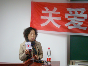李琴副会长系统的向爱心社成员介绍了红十字会的起源、宗旨,阐述了红十字会“人道性、公正性、中立性、独立性、志愿服务、统一性、普遍性”的七大基本原则。