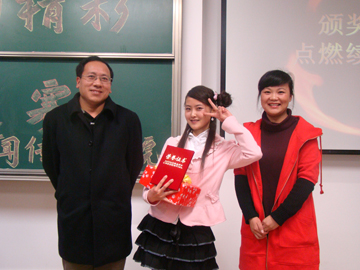 经过各个环节的考验,最终10级对外汉语的庞娟以微弱的优势获得一等奖,10新闻的阿梅和10新闻的陈雨菲获得二等奖,10汉语的张磊、10编辑的李彦龙、10汉语的邬冬娅获得三等奖。