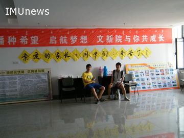 对于学院的新生报到处,学院也进行了精心的安排布置。一进入主教学楼九楼东侧,墙上“亲爱的家长、同学,您一路辛苦了”几个大字映入眼帘,学院的宣传展板、备好的桌椅、热水、矿泉水为前来报到的学生和家长营造了家的温馨氛围。