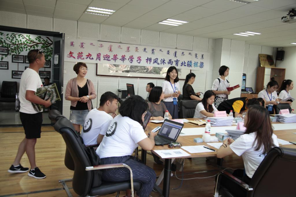 14号上午7点左右,新生陆续到校,学生会工作人员热情迎接新生,引导他们去宿舍楼办理入住登记并到艺术楼注册报到,充分的前期准备工作使新生报到工作有序顺畅地进行。