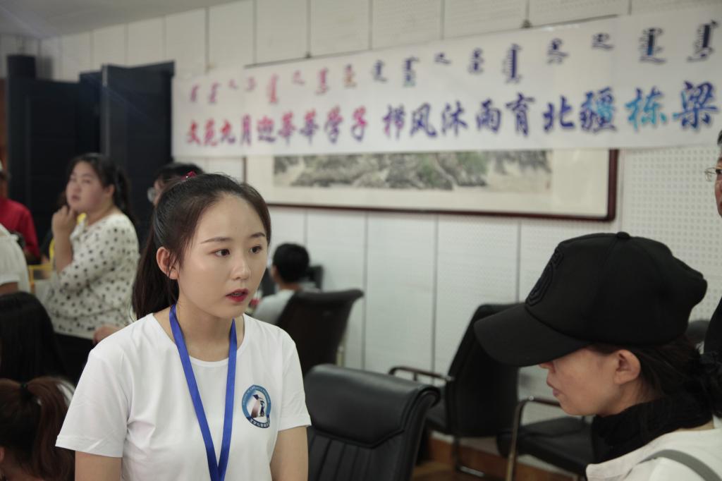 同时,在艺术楼会议室,新生注册报到工作有条不紊地开展。室内报到处的工作人员负责登记新生个人信息,收取审核档案,下发体检表和校园卡等必需物品,并向新生细心讲解需要注意的细节。领导老师及2018级各班班主任与学生家长亲切交谈,耐心地解答学生家长的问题。