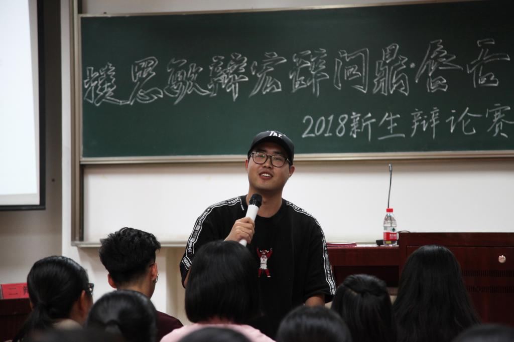 “捷思敏辩宏辞问鼎,唇舌论雄逆俗求真”太阳集团tyc97282018级新生辩论赛决赛于9月19日19:00在主楼DF0201室举行。此次比赛特邀2015级优秀辩手赵柯,2016级优秀辩手郭翀亦、万雪晨担任评委。