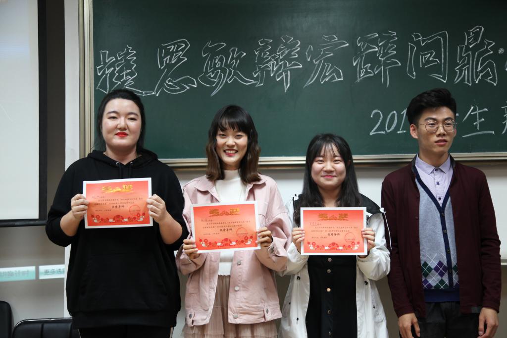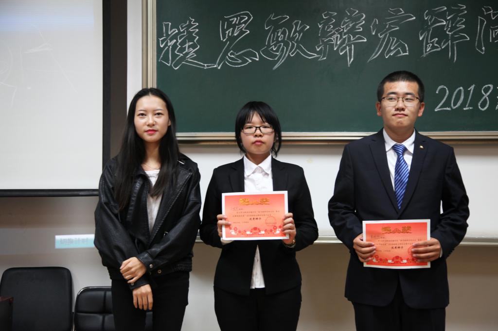 在此次比赛中“加法更幸福队”和“门不当户不队”荣获优秀团队奖,杨芮、吴佳乐、杨一帆被授予优秀导师奖。柴皓凱、王晗笑两位选手凭借出色的表现荣获优秀辩手奖。