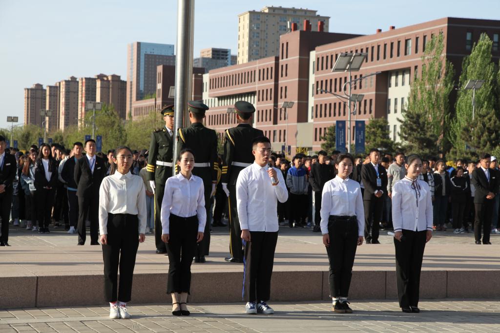 升旗仪式第三项:国旗下的演讲。本周的国旗下演讲由我院学生代表宋靓、敖文艳、照日登嘎、杨野、雷莹同学进行诗朗诵《美丽中国》。