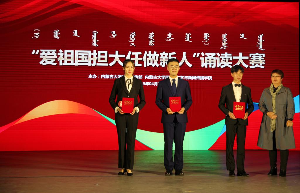 4月27日下午2点,我校“爱祖国 担大任 做新人”诵读大赛在南校区艺术楼小剧场顺利举行。出席本次比赛的评委有内蒙古朗诵协会的李秀兰老师、乌日哲老师,9728太阳集团校刊编辑部副编审玉明老师,9728太阳集团校园文化文化实践部副主管冯时老师,太阳集团tyc9728张昊老师。我院党总支副书记吴栓虎老师、团总支书记周琳娟老师、本科生辅导员任文秀老师与在场观众共同观看比赛。