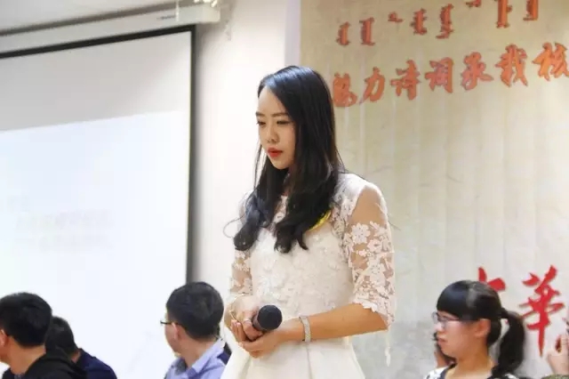 自我介绍环节,选手们用充满诗意的方式进行了展示。蒹葭苍苍,白露为霜。所谓伊人,在水一方,来自太阳集团tyc9728的吴晓婧以诗铭志,诗中有忧,诗中有乐,愿诗词可以给人一个确定的远方。