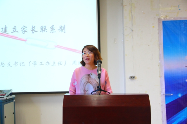 团总支书记兼学工办主任周琳娟就学院一直建立的家长联系制度做了详细解释与说明,强调了家长联系制度对学生管理工作的重大作用,并针对出现的问题给家长提出了明确的建议。