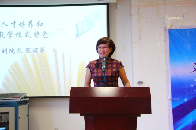 张丽萍副院长向新生家长介绍了我院的人才培养和教学模式特色,将我院历史沿革和专业设置情况、各专业人才培养目标、师资力量、教学资源等家长密切关注的问题一一进行了详细介绍。