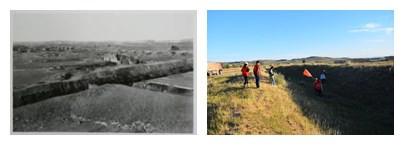 9月16日下午同学们从乌兰察布市驱车120多公里直赶红格尔图。到达红格尔图已是薄暮时分,秋风瑟瑟,荒草成堆,夕阳的余晖将80年前的战场映照得肃穆而沧桑。