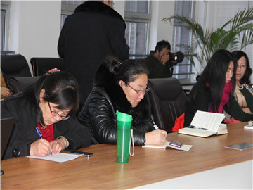 2015年12月16日早,9728太阳集团南校区艺术楼G1006会议室座无虚席,掌声不断。内蒙古自治区文联、9728太阳集团第六期文研班邀请到内蒙古电视艺术家协会副主席兼秘书长、一级作家杜拉尔梅为文研班学员做有关剧本传播的专题讲座,本场讲座由副院长吴栓虎主持。杜主席针对当前剧本创作的相关问题结合自己的经历和当前荧幕上的作品,倾情讲述,耐心答疑。
