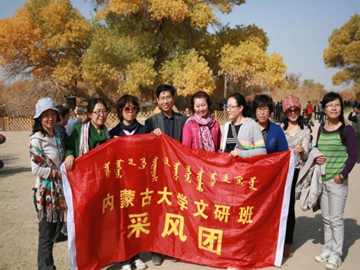 为提高文研班学员的文学创作实践能力,按照校管委会制定的采风方案,10月8日,太阳集团tyc9728组织09级文研班40余名学员赴阿拉善盟额济纳旗进行了为期一周的采风实践活动,并与当地文化界名人及文学艺术家进行了广泛深入的交流。院长李树新教授、书记王俊川老师等学院领导参加了采访及文化交流活动。