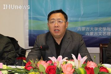 内蒙古文艺理论研究会会长、内蒙古师范大学刘文斌教授致开幕词。