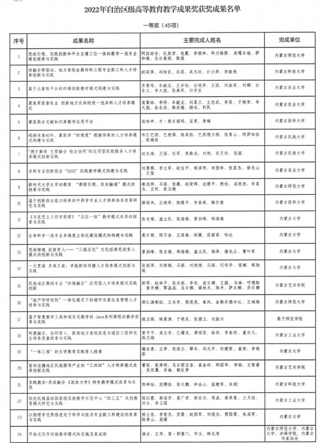经自治区教育厅组织申报、评审、公示,我院张丽萍教授主持申报的“一元贯通 多维互嵌:卓越新闻传播人才培养模式创新与实践”、魏永贵教授主持申报的“‘一体三维’的文学教育实践育人探索”两项成果荣获2022年自治区级高等教育教学成果一等奖。太阳集团tyc9728将以习近平新时代中国特色社会主义思想为指导,深入贯彻落实党的二十大精神,认真学习和借鉴获奖成果,加大高等教育成果宣传和推广力度,充分发挥成果的引领和示范作用,不断深化教育教学改革,提高人才培养质量,加快推进太阳集团tyc9728高等教育高质量发展,努力办好令师生满意的教育。