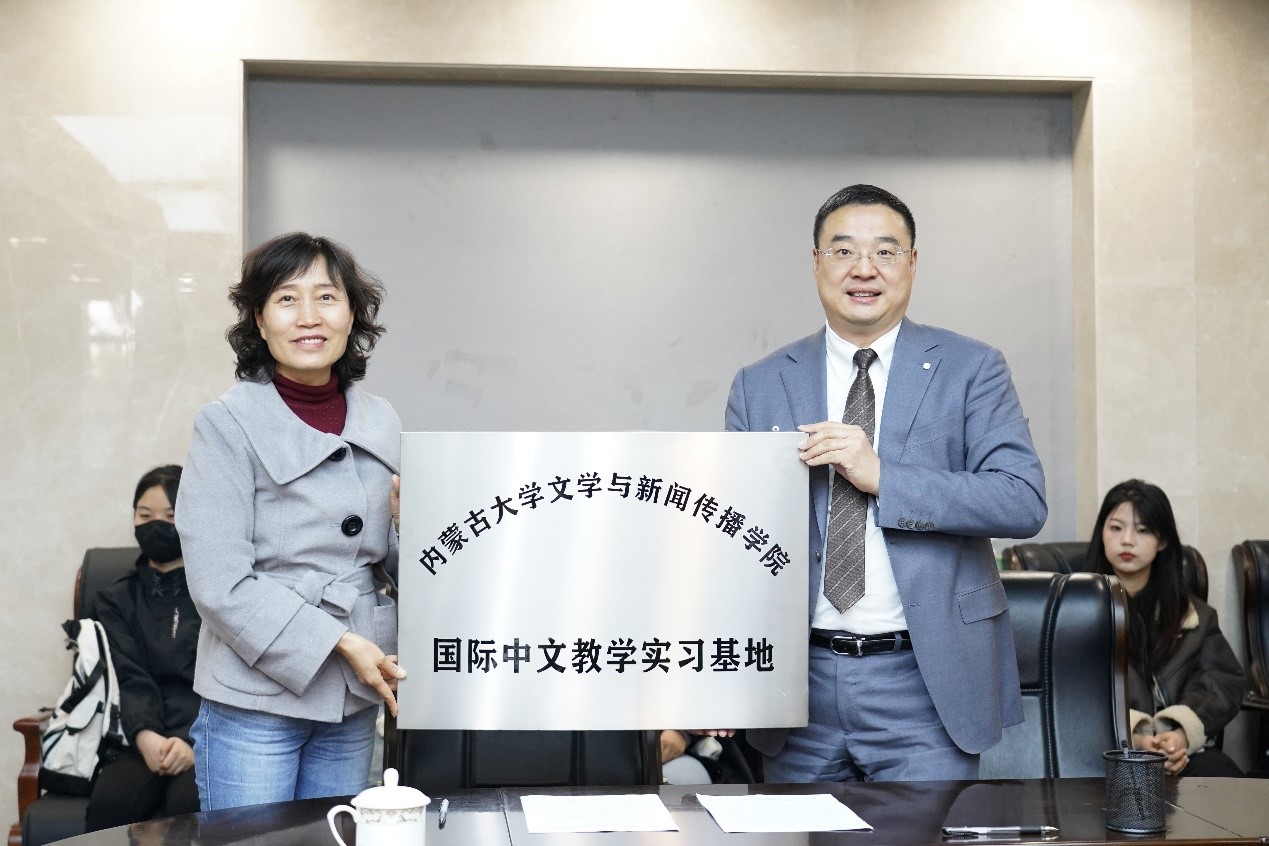 4月14日下午,我院同国际教育学院在学术会议中心6号会议室举办了国际中文教学实习基地挂牌签约仪式。9728太阳集团副校长额尔很巴雅尔,太阳集团tyc9728院长米彦青,国际教育学院院长任利刚,教务处副处长、汉语国际教育专业负责人许晋,汉语言文学系主任付建荣等教师以及2020级汉教班全体同学参加了仪式。米彦青院长和任利刚院长代表双方签署协议并揭牌。签约仪式由汉语言文学系主任付建荣主持。