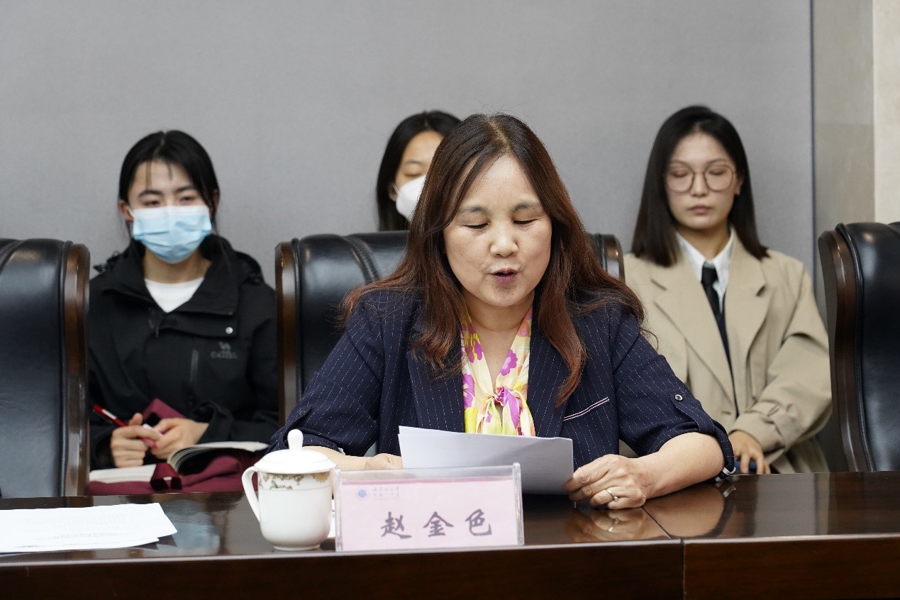国际教育学院国际中文教研室主任赵金色老师向在场的老师和同学们介绍了国际汉语教学实践性、互动性等特点,希望同学们在实习过程中能够提高思想认识,热爱教育,热爱中国文化,做好中国语言和中国文化的传播人。