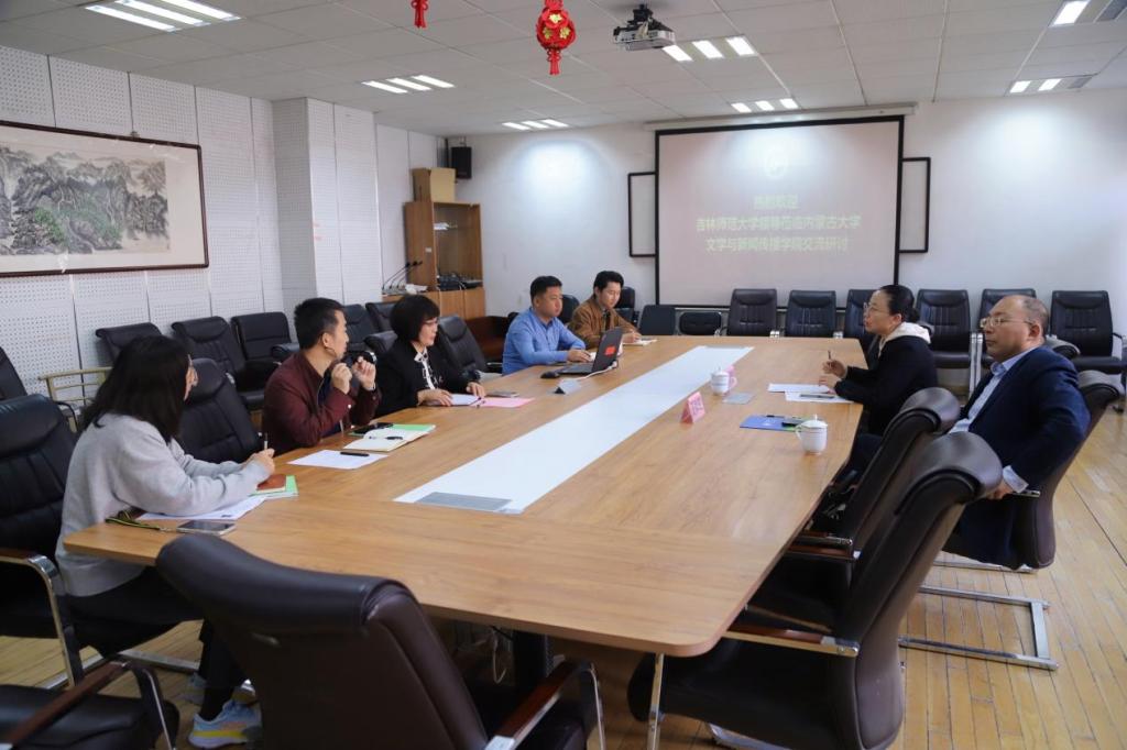 10月18日上午十点,吉林师范大学文学院院长孙艳红、新闻与传播学院院长夏维波来我院交流研讨。研讨会由我院党委书记张丽萍主持,副院长刘志中、鄢冬,教务办主任贾静,行政办副主任冯坤参会。