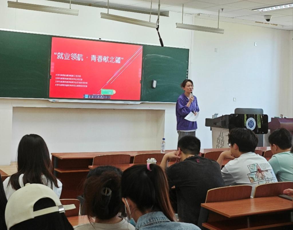 为帮助学生明确职业目标,掌握备考技巧,5月31日上午,我院党委组织教工党支部、本科生党支部、研究生党支部联合召开“就业领航•青春献北疆”系列讲座,本次讲座面向我院全体学生展开,由我院本科生党支部书记任文秀主持,教工党支部教师主讲。