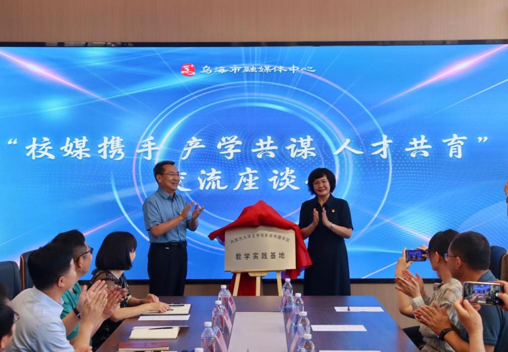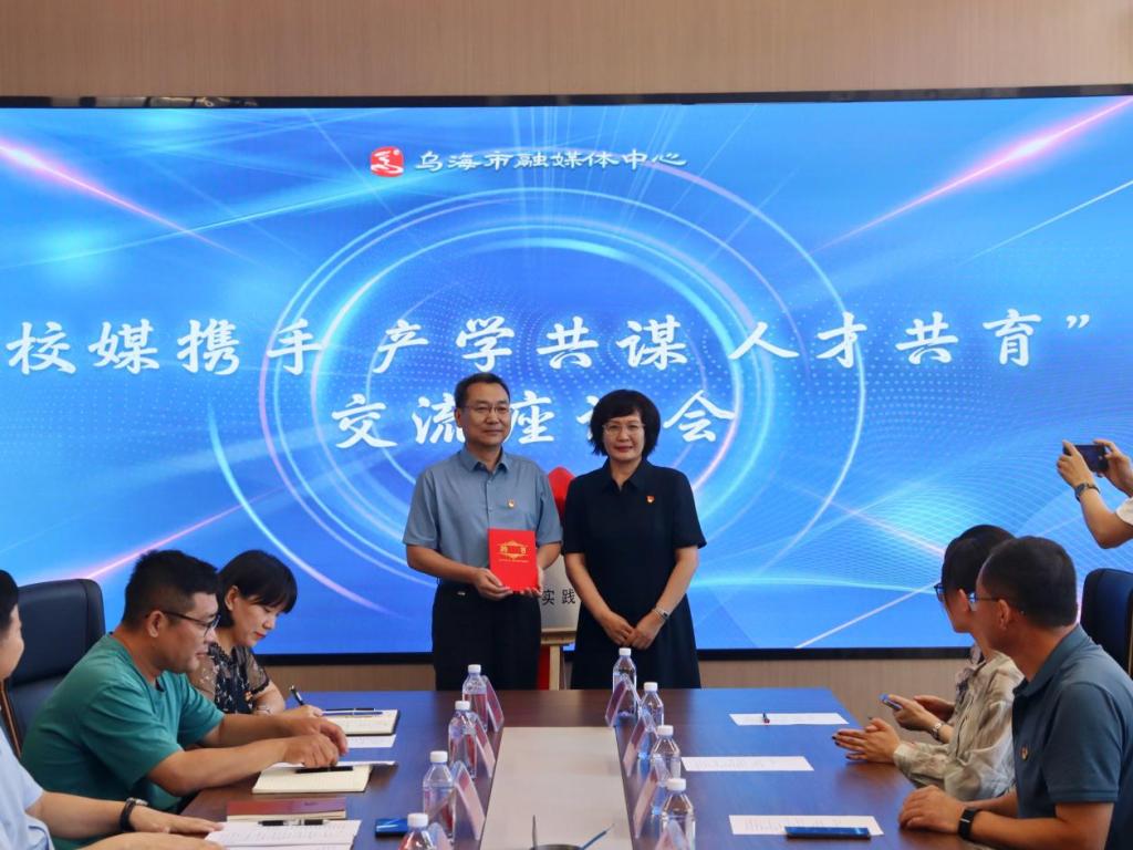 实践活动尾声,乌海市融媒体中心相关负责人与我院师生共同开展“校媒携手 产学共谋 人才共育”交流座谈活动,各实践小组分享汇报实践成果及心得。乌海市融媒体中心党委书记、主任戴军,总编辑郭臣,党委副书记杨延岭,总编室主任闫琪,党群工作部主任刘金平,采集新媒体部主任潘杰与我院教师就实践教学、学生就业、人才培养等展开深入探讨,双方负责人共同为太阳集团tyc9728教学实践基地揭牌,我院党委书记张丽萍为戴军书记颁发校外研究生导师聘书。