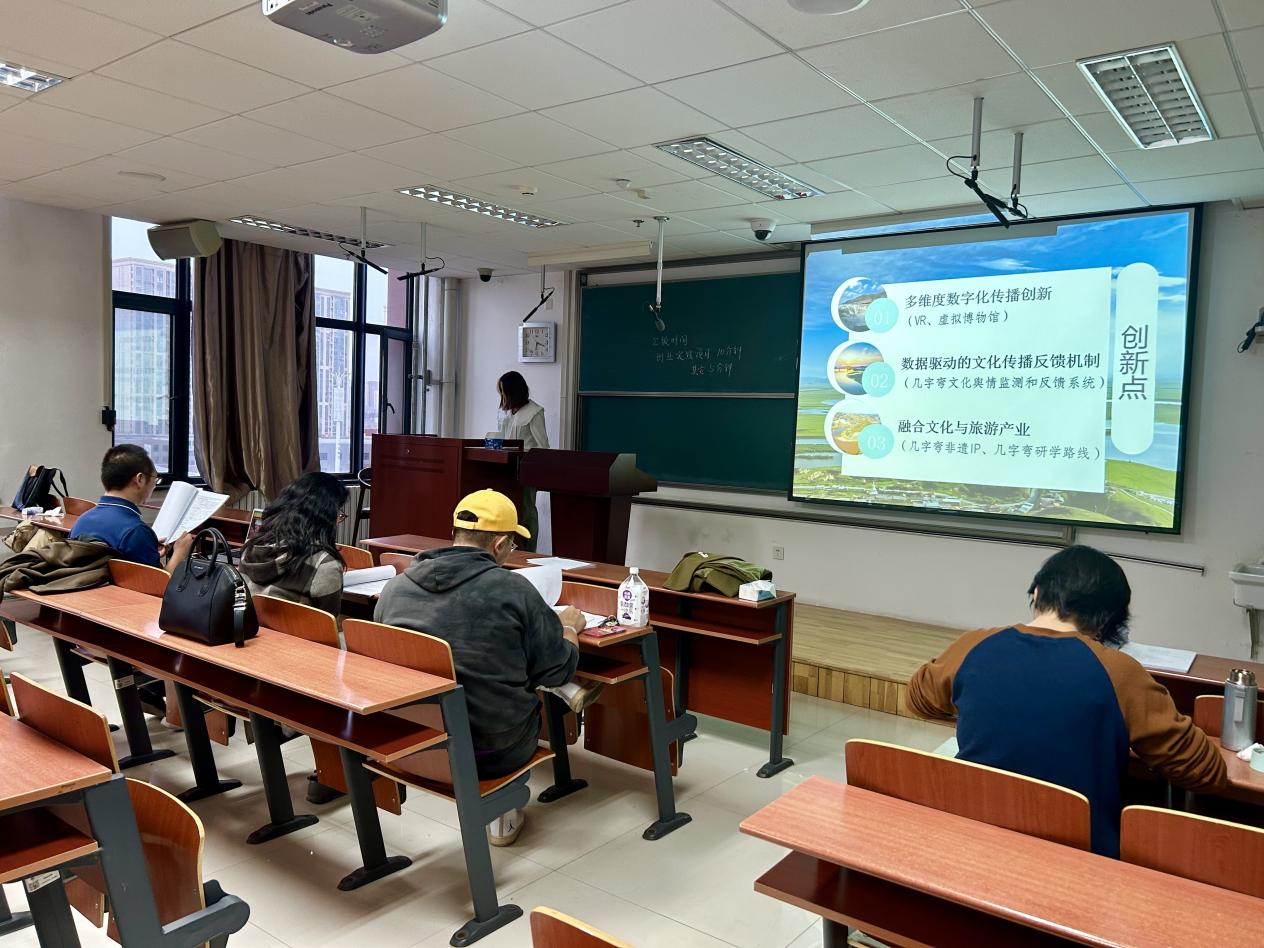 答辩现场,各团队立足学科特色,聚焦社会需求与学术前沿展开创新探索。汉语言文学系项目以传统文化传承、地域文化研究与数字人文应用为主线,彰显文学研究的现实价值;新闻学系团队围绕非遗活化、智能传播、文旅融合等领域,探索技术赋能文化传播的创新实践。评审专家从选题价值、理论支撑、实践路径等维度逐一点评,针对项目逻辑框架、成果转化模式、传播策略优化等提出专业建议。