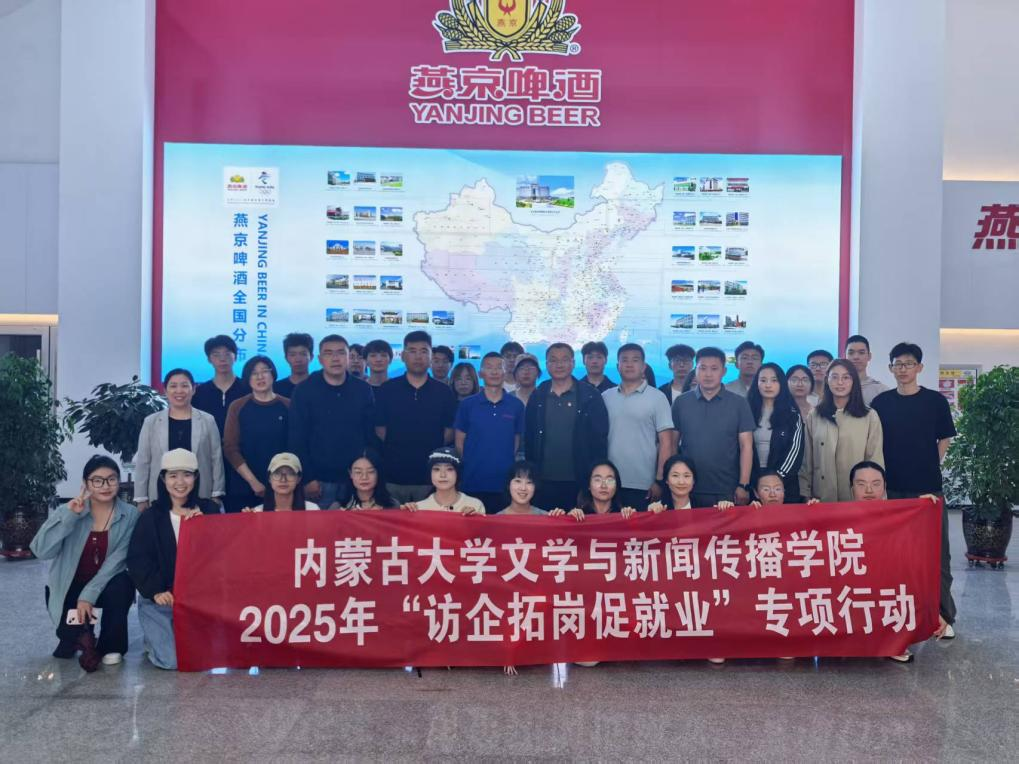 为进一步落实学校访企拓岗促就业专项行动,拓宽毕业生就业渠道、提高就业质量,同时深化院企党建交流,互鉴党建工作经验,2025年5月30日,我院党委副书记康宝军带队赴燕京啤酒(呼和浩特)有限公司走访,与燕京啤酒(呼和浩特)有限公司党委书记、总经理田立卓,党委副书记、副总经理胡小伟,燕京西北销售公司呼市大区总监卢凯,党委委员、党群人事部经理王文柱座谈交流。学院教务办主任贾静,教工党支部书记、汉语系副系主任左少峰,教工党支部副书记范云晶、本科生党支部书记张淼、辅导员齐艳茹以及30余名学生随行前往。
