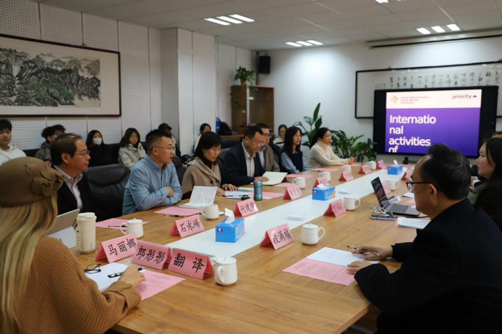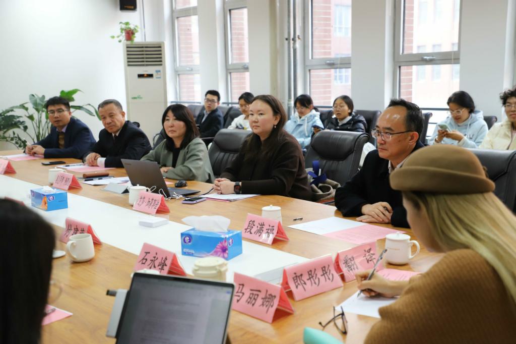 2025年11月20日下午,俄罗斯卡尔梅克国立大学副校长奥克萨娜·科涅娃、孔子学院俄方院长艾莎·伽莉耶娃、中方院长王建军一行到访学院,共商合作办学事宜。