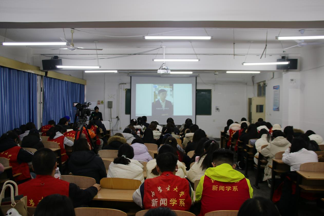 座谈结束后,两校师生共同聆听了一堂马克思主义新闻观主题课程。课程特邀河北广播电视台资深记者甄秀峰担任主讲,她以“追寻先辈足迹 传承红色基因”为题,生动讲述了燕赵大地上的红色新闻故事,通过历史与现实的交融,引导师生深刻体悟新闻工作的初心与使命。